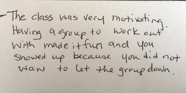 All classes have been fun and motivational. It's been great working out with friends and meeting new people, who were all lovely. The daily homework was achievable and made me get into a good routine. I will miss class but look forward to our new class in January.